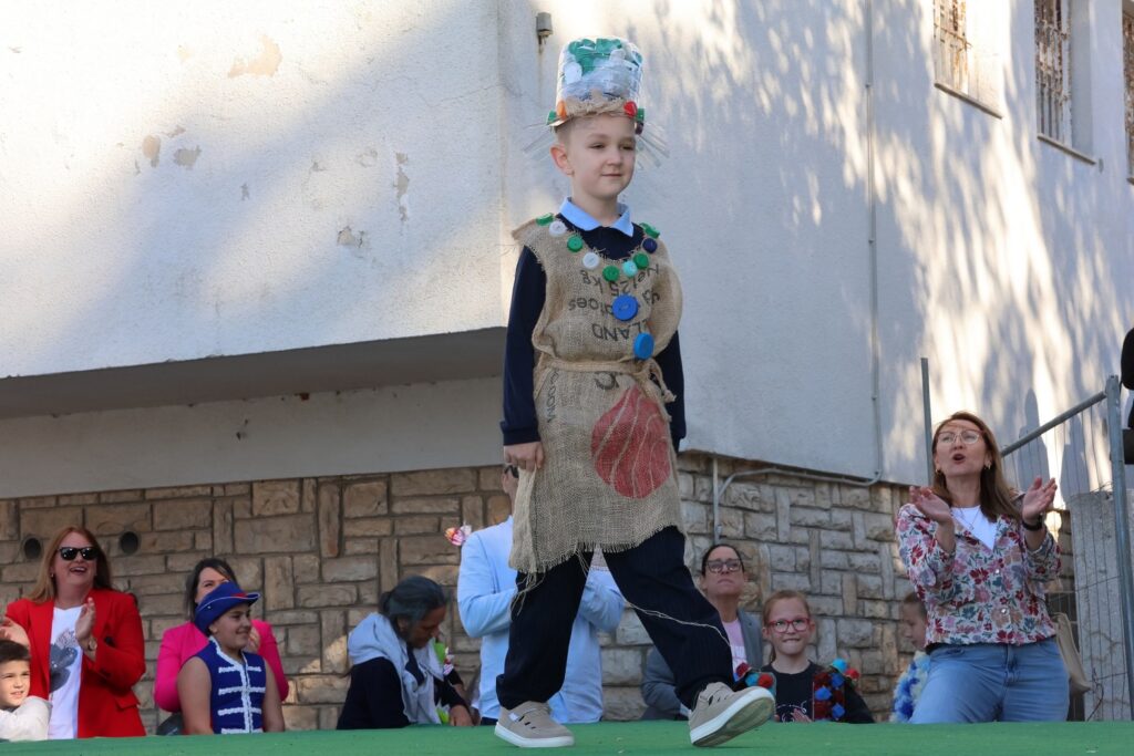 U eko modnoj reviji sudjelovali su učenici od 1. do 8. razreda matične škole, kao i svi područni odjeli. Svaki razred, uz podršku svojih učitelja, osmislio je i izradio originalnu modnu kreaciju koristeći reciklirane i prirodne materijale.