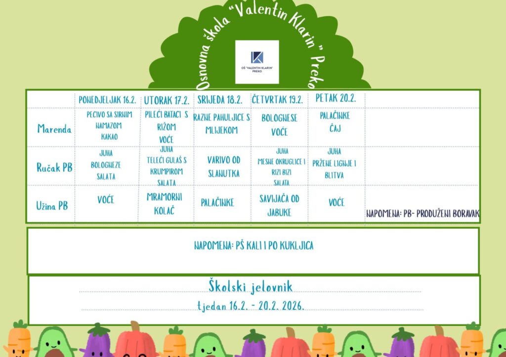 Osnovna škola „Valentin Klarin“ obavještava roditelje i učenike da je na roditeljskom sastanku učenika 8. razreda, održanom 3. veljače 2026. godine, jednoglasno donesena odluka o odabiru ponude za realizaciju višednevne izvanučioničke nastave. Nakon provedenog javnog...